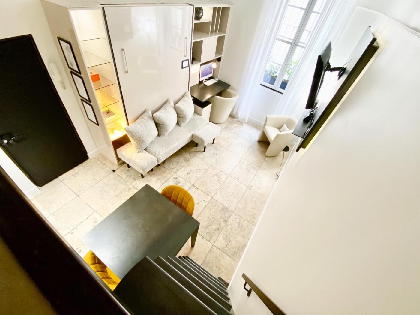 Studio. Doté d’une entrée privée, cet appartement comprend un lecteur CD et des ustensiles de cuisine. Vous disposerez d’une connexion Wi-Fi et d’un chargeur de téléphone portable. Un guide de la ville est également fourni. Le matelas de la mezzanine est adapté aux enfants, mais pas aux adultes. Sachez que l’échelle menant à la mezzanine est raide et que la hauteur du plafond est inférieure à 1,5 mètre. Veuillez noter que le lit du rez-de-chaussée est un lit gigogne.