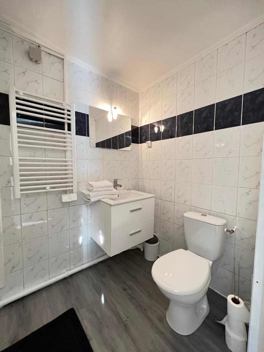 Appartement 2 Chambres. This apartment features a kitchen, a seating area, 2 separate bedrooms and 1 bathroom with a shower and a hairdryer. The fully equipped kitchen has a stovetop, a refrigerator, kitchenware and an oven. The apartment features a washing machine, a tea and coffee maker, a dining area, a wardrobe, as well as a flat-screen TV. The unit has 2 beds. ;