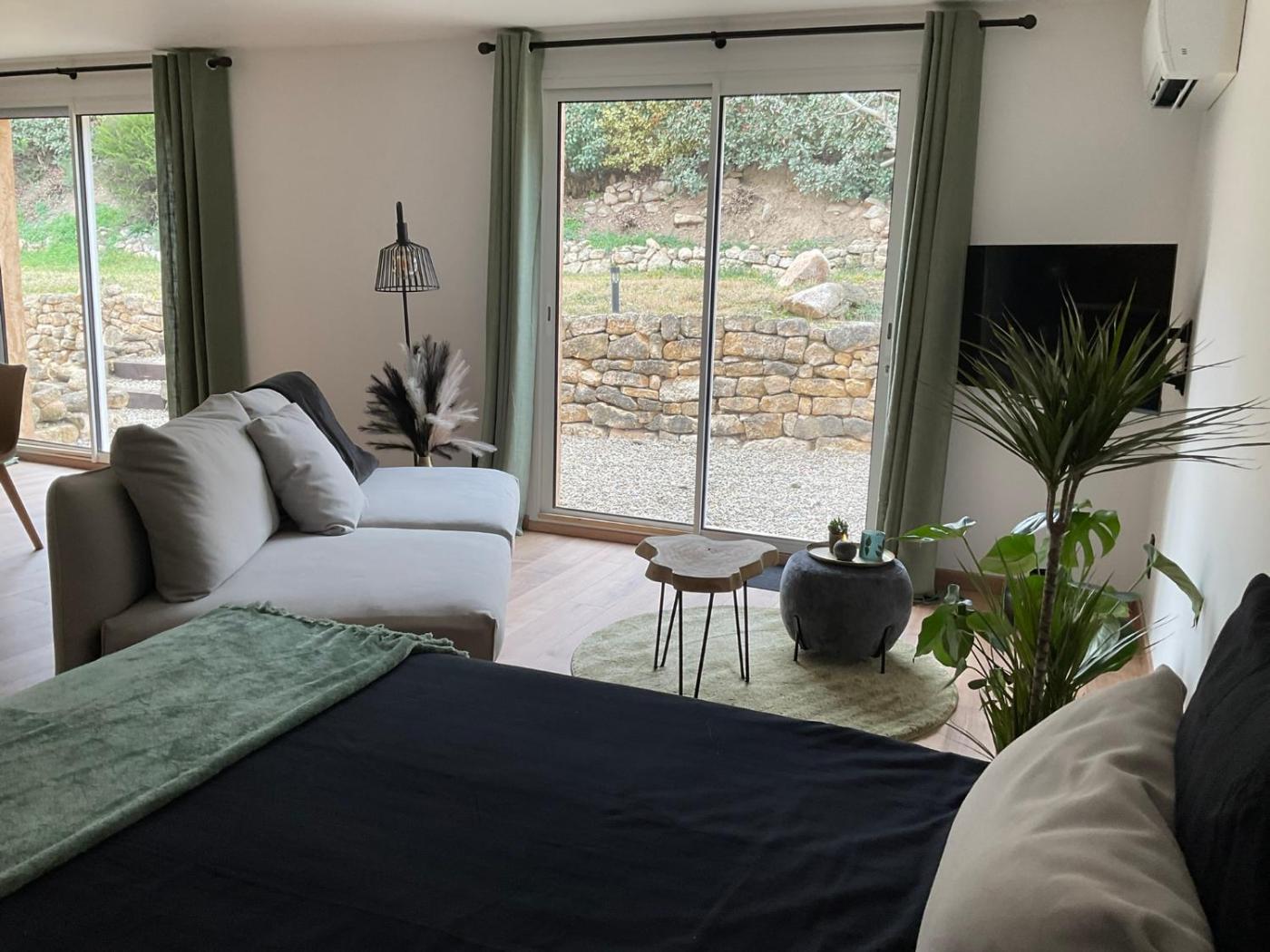 Studio - Vue sur Montagne. This studio provides a pool with a view. Guests will find a stovetop, a refrigerator, a dishwasher and kitchenware in the kitchen. The studio also provides guests with a barbecue. This air-conditioned studio includes a flat-screen TV with streaming services, a private bathroom as well as a terrace with garden views. The unit offers 3 beds.