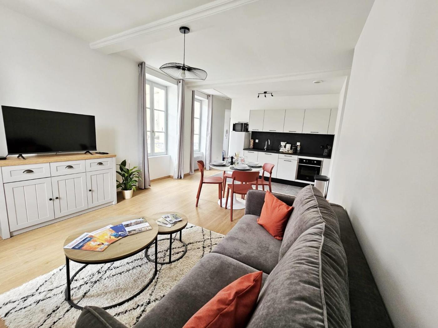 Appartement 1 Chambre. This apartment includes 1 living room, 1 separate bedroom and 1 bathroom with a shower and free toiletries. In the kitchen, guests will find a stovetop, a refrigerator, a dishwasher and kitchenware. The apartment has parquet floors, a seating area with a flat-screen TV with streaming services, a washing machine, a coffee machine, as well as a dining area. The unit has 2 beds.