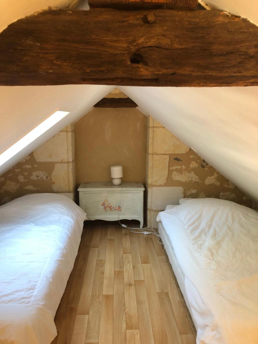 Chambre Quadruple avec Salle de Bains Privative. This quadruple room has 2 single beds on the mezzanine. The staircase within the room does not have a safety barrier and is not suitable for young children. ;