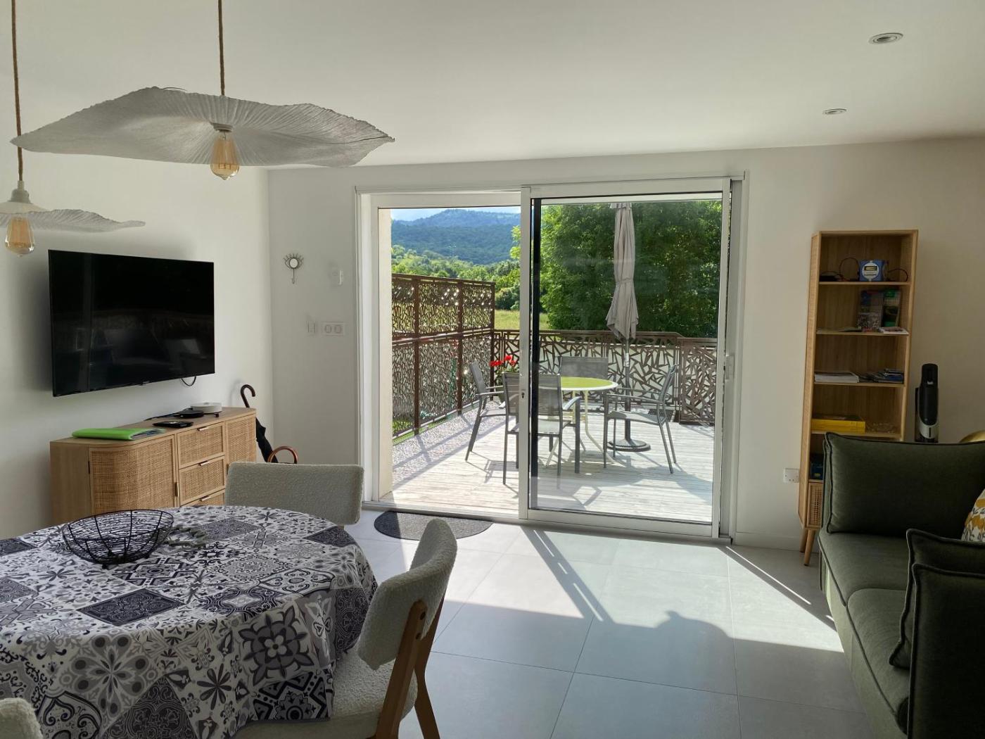 Appartement 1 Chambre. Featuring a private entrance, this apartment consists of 1 living room, 1 separate bedroom and 1 bathroom with a walk-in shower and a hairdryer. Guests will find a stovetop, a refrigerator, a dishwasher and kitchenware in the well-equipped kitchen. The apartment also offers a barbecue. Boasting a terrace with garden views, this apartment also provides a washing machine and a flat-screen TV with streaming services. The unit offers 2 beds.