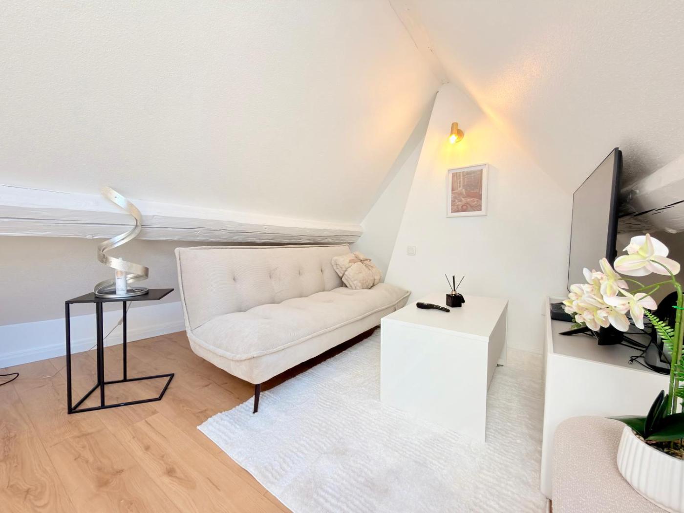 Cet appartement se compose de 1 chambre, dun salon, dune cuisine entièrement équipée avec un micro-ondes et une machine à café, ainsi que de 1 salle de bains avec une baignoire et un sèche-cheveux. Des serviettes et du linge de lit sont disponibles.