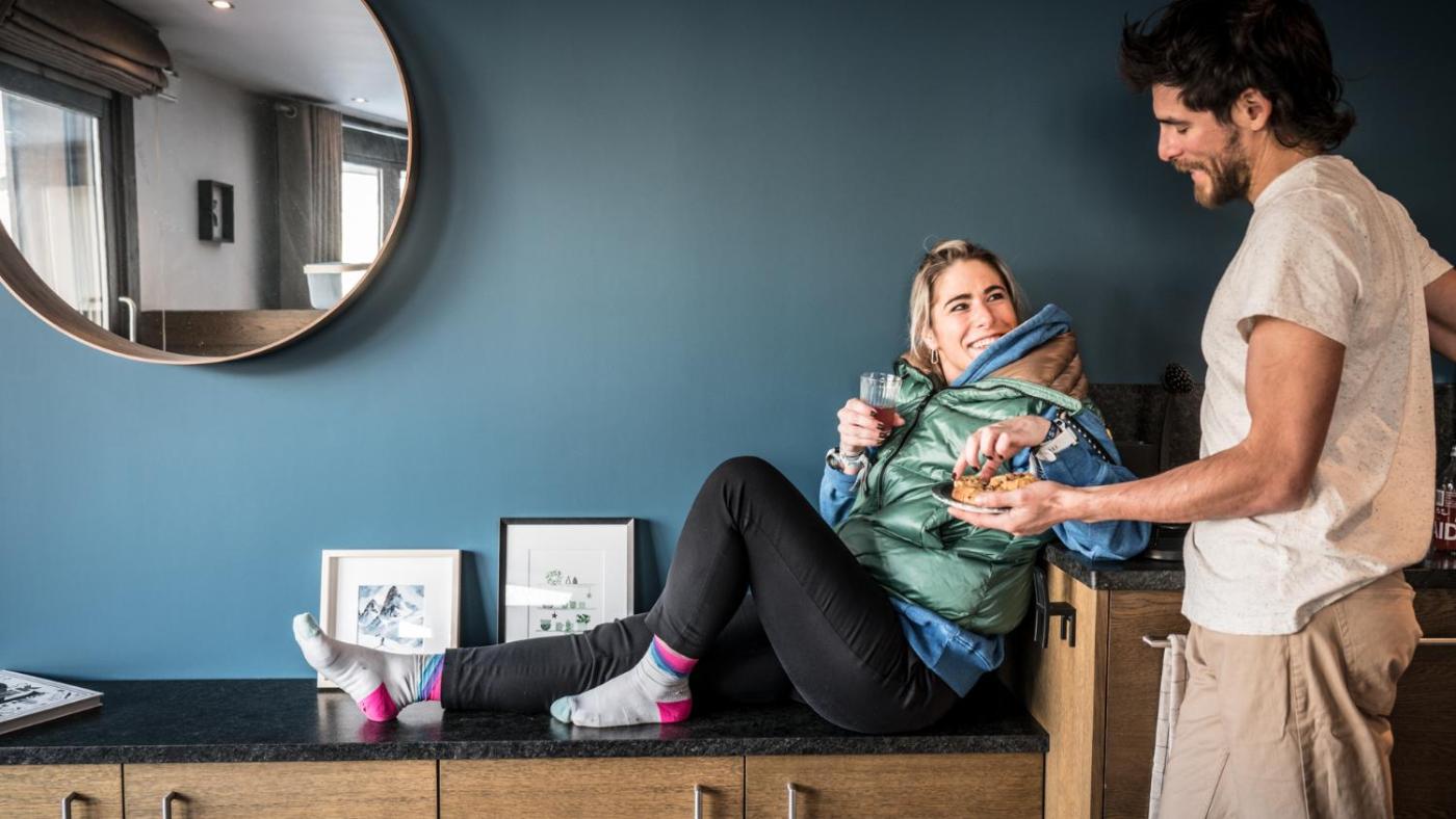 Appartement 2 Chambres. Cet appartement spacieux comprend un salon, 2 chambres séparées ainsi quune salle de bains pourvue dune baignoire et de peignoirs. La cuisine bien équipée est munie d’un réfrigérateur, d’un lave-vaisselle, d’un four et d’un plateaubouilloire. Doté dune terrasse donnant sur la montagne, cet appartement dispose également dun lave-linge et dune télévision à écran plat avec des services de streaming. Ce logement comprend 3 lits.