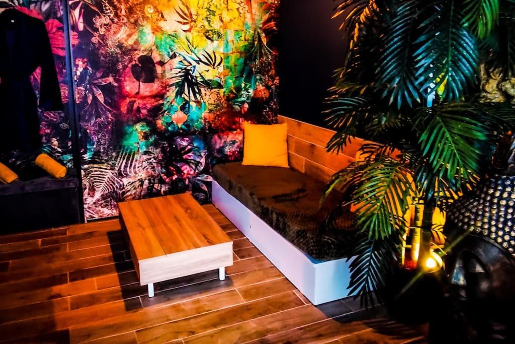 Appartement 1 Chambre. This luxurious apartment features a hot tub, a sauna and a fireplace. Featuring a private entrance, this apartment also is comprised of 1 bedroom, a seating area and 1 bathroom with a walk-in shower and a bath. In the kitchen, guests will find a stovetop, a refrigerator, kitchenware and an oven. The apartment offers soundproof walls, a tea and coffee maker, a dining area, a tiled floor, as well as a flat-screen TV with streaming services. The unit offers 1 bed.