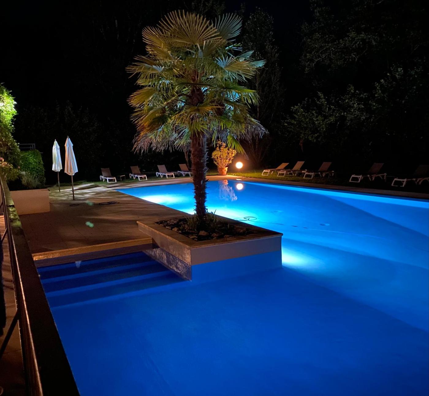 Chambre Lit Queen-Size - Vue sur Piscine. The double room provides air conditioning, a tea and coffee maker, as well as a private bathroom featuring a bath and a hairdryer. This double room features a wardrobe, parquet floors, a flat-screen TV and a balcony. ;