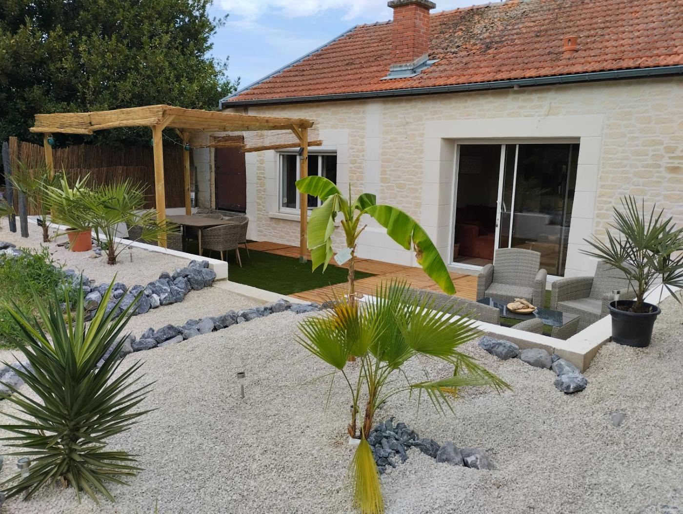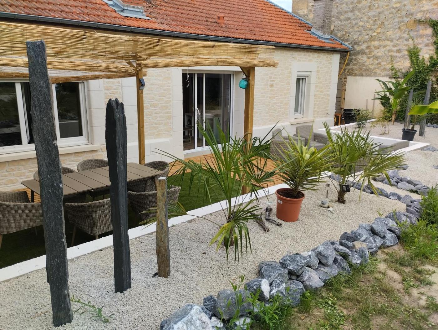 Maison 2 Chambres. This holiday homes special feature is the hot tub. Featuring 2 bedrooms and 1 bathroom, this holiday home offers a living room and terraceyou can relax. Guests will find a stovetop, a refrigerator, a dishwasher and kitchenware in the kitchen. The holiday home also offers a barbecue. The holiday home provides a flat-screen TV, a washing machine, a private entrance, a coffee machine as well as garden views. The unit has 2 beds.