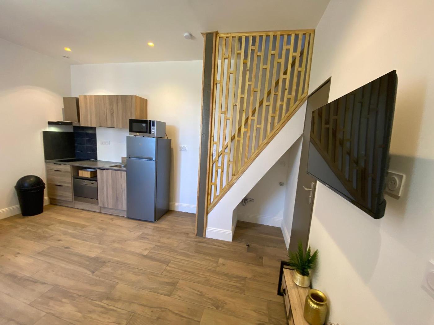 Maison 1 Chambre. Featuring a private entrance, this air-conditioned holiday home comprises 1 living room, 1 separate bedroom and 1 bathroom with a walk-in shower and a hairdryer. The fully equipped kitchen features a stovetop, a refrigerator, a dishwasher and a microwave. Boasting a terrace with garden views, this holiday home also provides a washing machine and a flat-screen TV. The unit offers 3 beds.