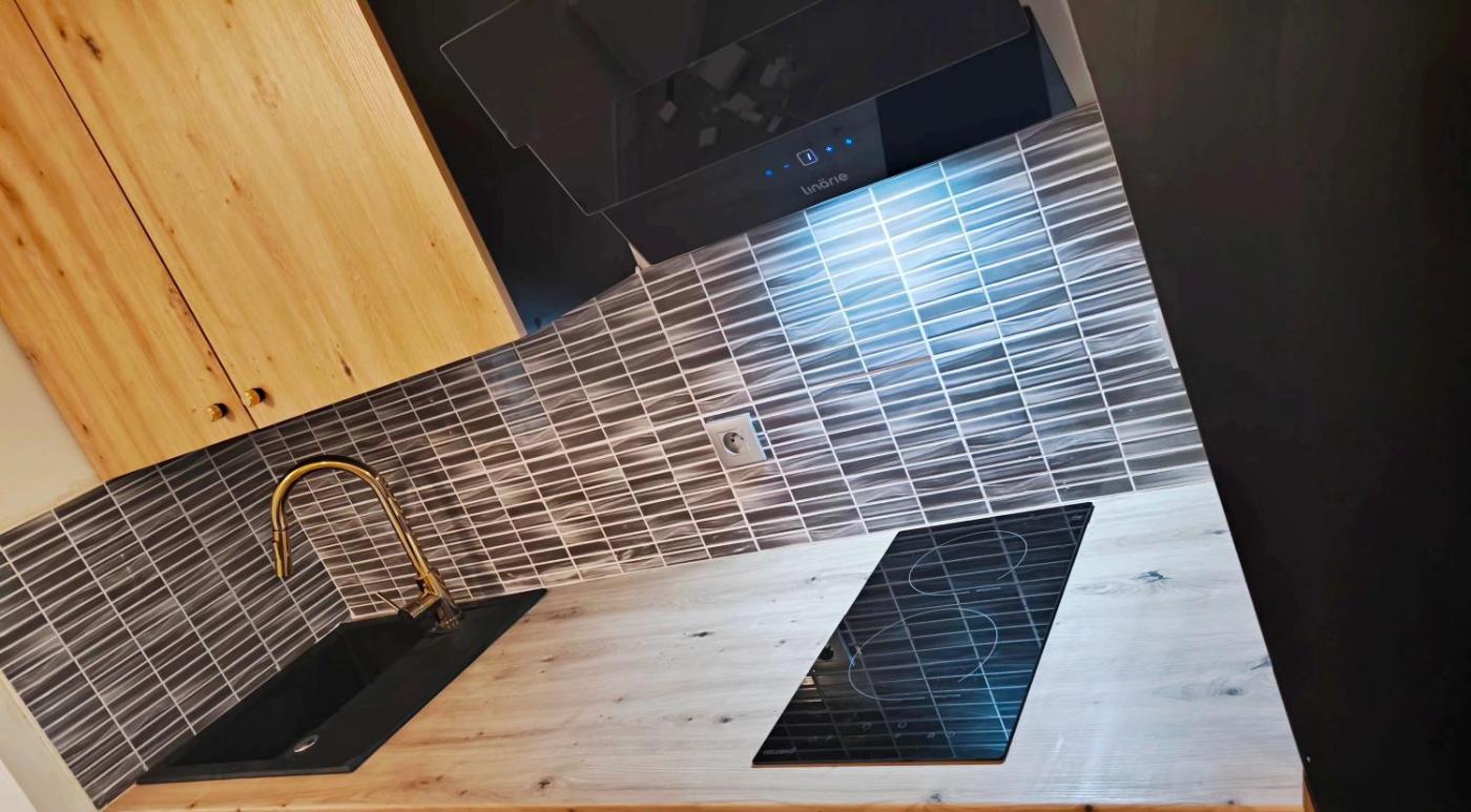 Cet appartement possède 1 chambre, un salon avec une télévision à écran plat, une cuisine équipée, ainsi que 1 salle de bains avec un bidet et une baignoire ou une douche.