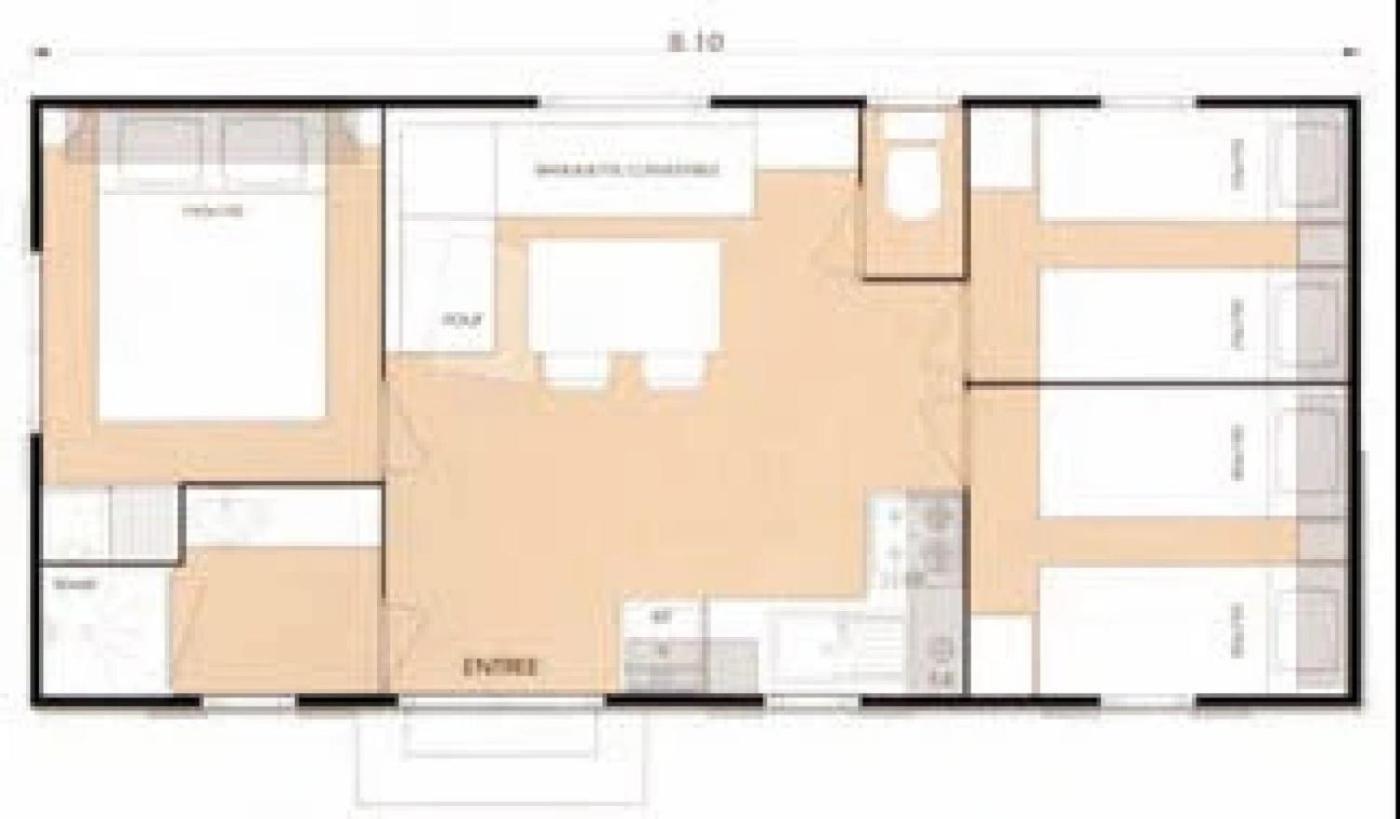 Mobile Home. Featuring a private entrance, this mobile home also is comprised of 1 living room, 3 separate bedrooms and 1 bathroom with a shower. Guests will find a stovetop, a refrigerator, kitchenware and a microwave in the fully equipped kitchen. The mobile home also has a barbecue. The unit offers 6 beds.