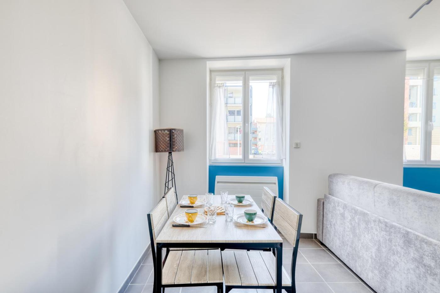Appartement 1 Chambre. This apartment includes 1 living room, 1 separate bedroom and 1 bathroom with a shower and free toiletries. Guests can make meals in the kitchen that is fitted with a stovetop, a refrigerator, kitchenware and an oven. The apartment offers a washing machine, a tea and coffee maker, a seating area, a dining area and a flat-screen TV. The unit has 2 beds.
