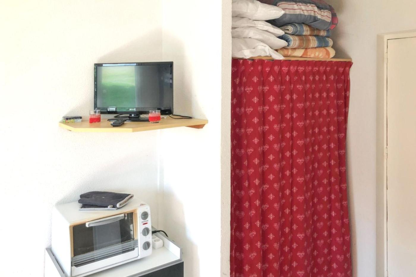 Studio 1 Chambre. The studio provides a seating area and a wardrobe, as well as a private bathroom featuring a shower. The fully equipped kitchen features a stovetop, a refrigerator, an oven and a tea and coffee maker. This studio features a TV. The unit offers 2 beds.