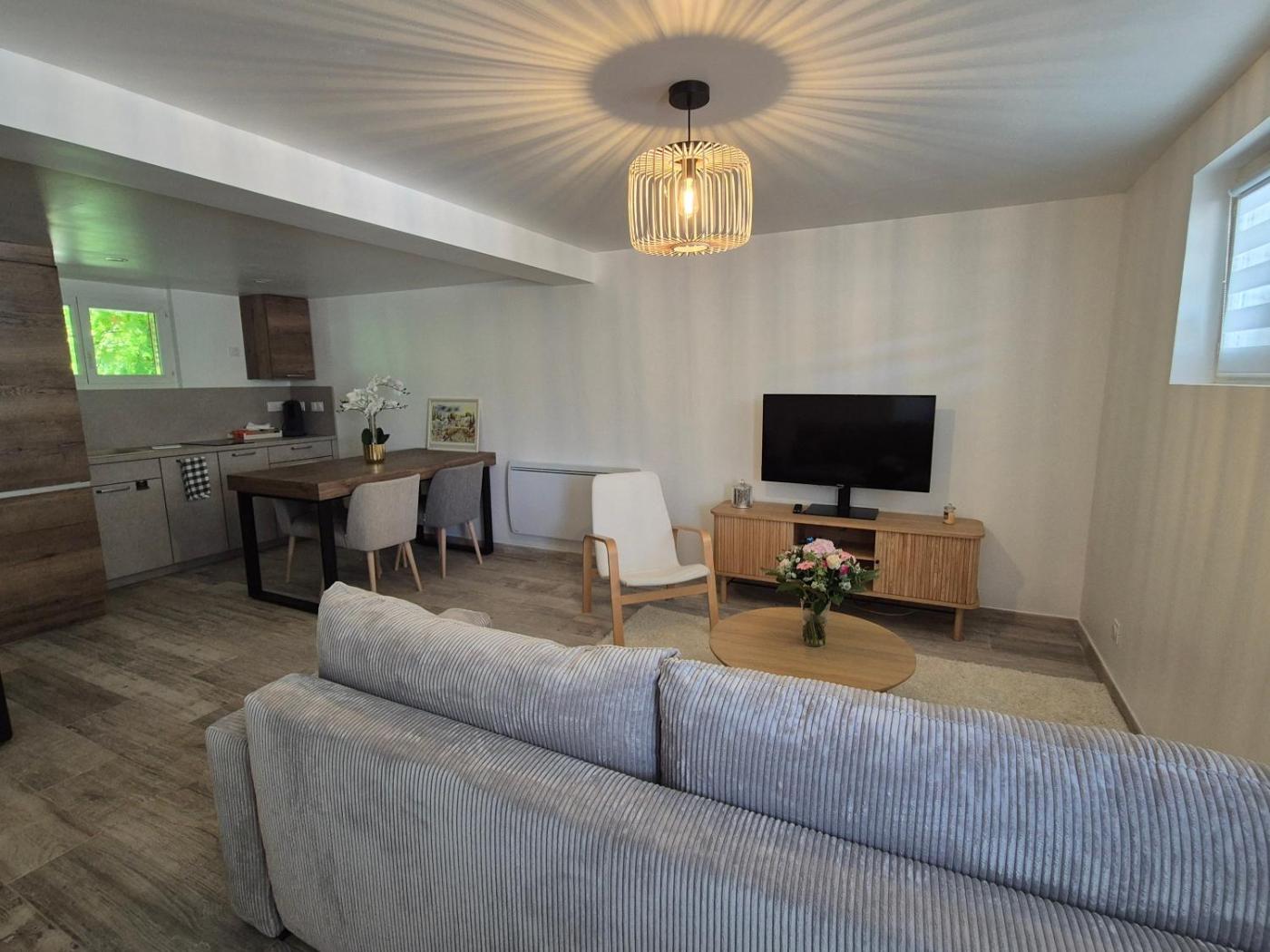 Appartement 1 Chambre. This apartment comes with 1 bedroom, kitchen, a terrace and 1 bathroom with a shower. Meals can be prepared in the well-fitted kitchen, which features a stovetop, a refrigerator, kitchenware and an oven. The apartment features a private entrance, a tea and coffee maker, a dining area, a flat-screen TV with cable channels, as well as garden views. The unit has 1 bed.