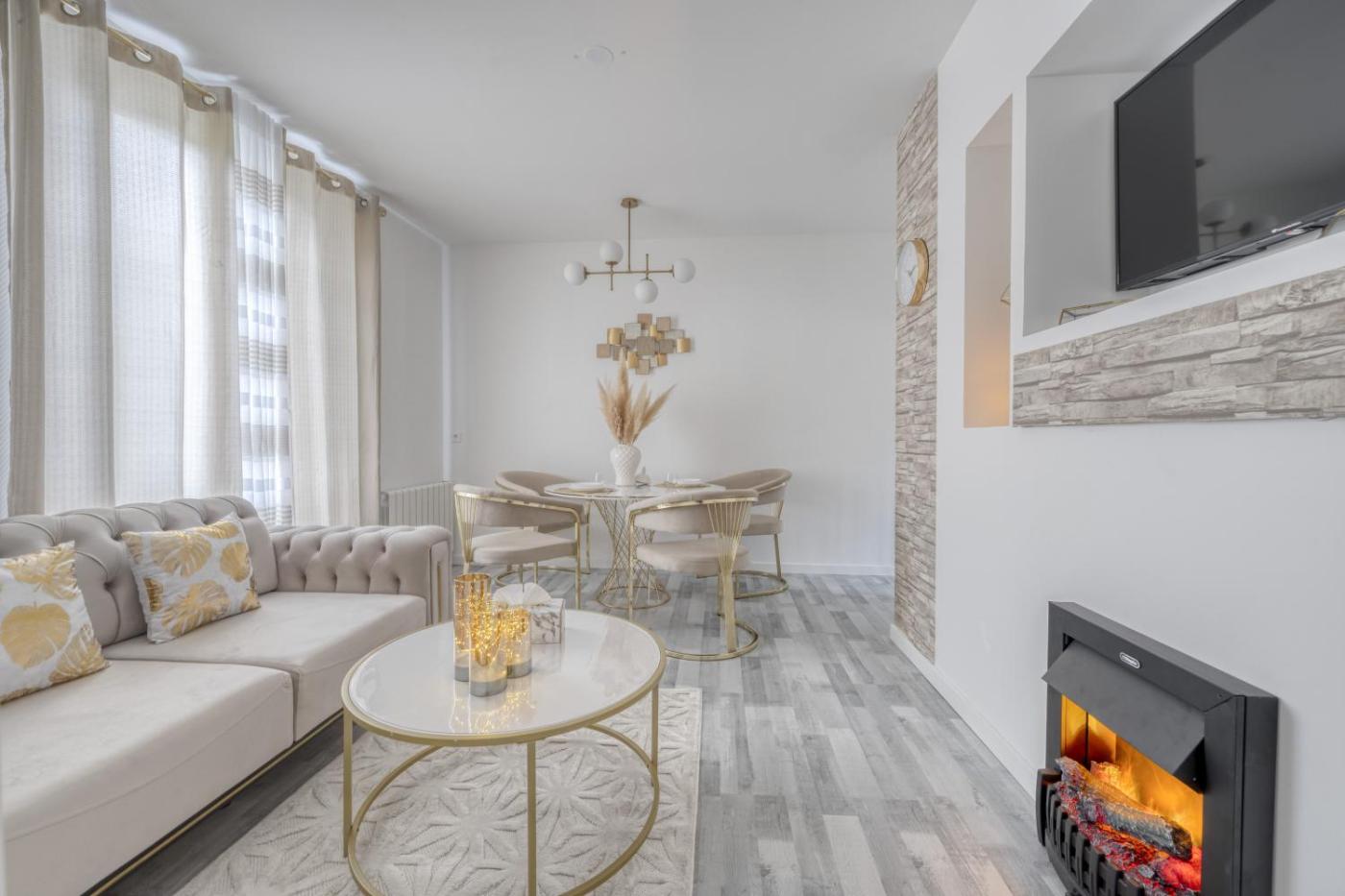 Appartement 1 Chambre. This luxurious apartment has a hot tub, a spa bath and a fireplace. In the kitchen, guests will find a stovetop, a refrigerator, an oven and a microwave. The spacious apartment features a washing machine, a private entrance, soundproof walls as well as a terrace with garden views. The unit has 1 bed.