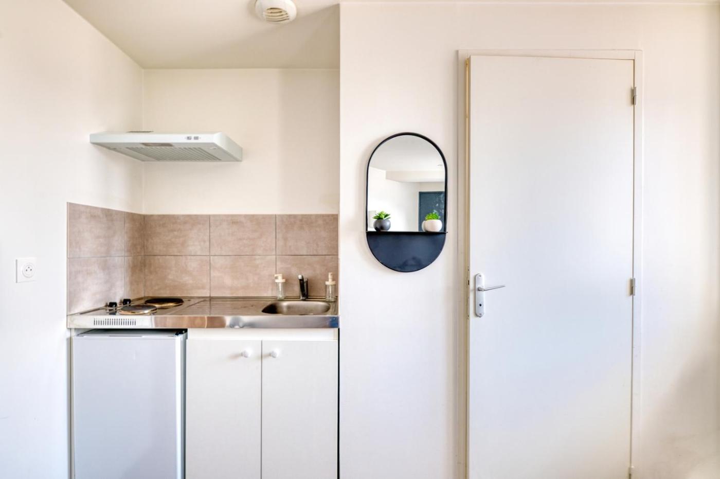 Studio. The apartment has a private bathroom, a washing machine, soundproof walls, as well as a seating area with a flat-screen TV. Guests can make meals in the kitchen that is fitted with a stovetop, a refrigerator, kitchenware and a microwave. The apartment offers a coffee machine, a sofa, parquet floors, heating and a TV. The unit has 1 bed.