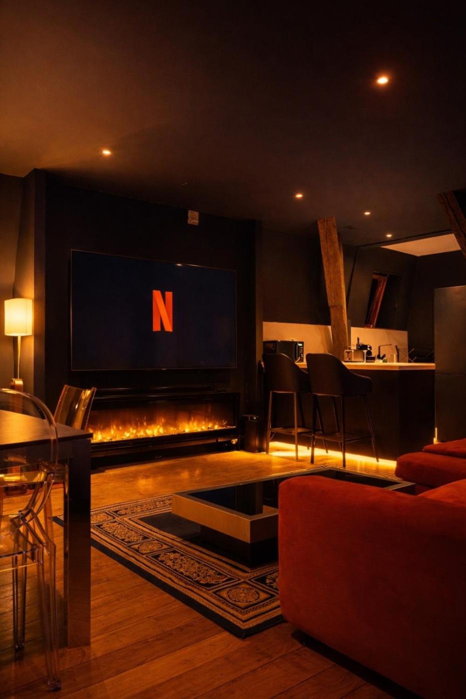 Appartement 1 Chambre. The fireplace is a top feature of this apartment. In the well-equipped kitchen, guests will find a stovetop, a refrigerator, kitchenware and an oven. The spacious apartment features a flat-screen TV with streaming services, a washing machine, a private entrance, soundproof walls as well as garden views. The unit has 2 beds.