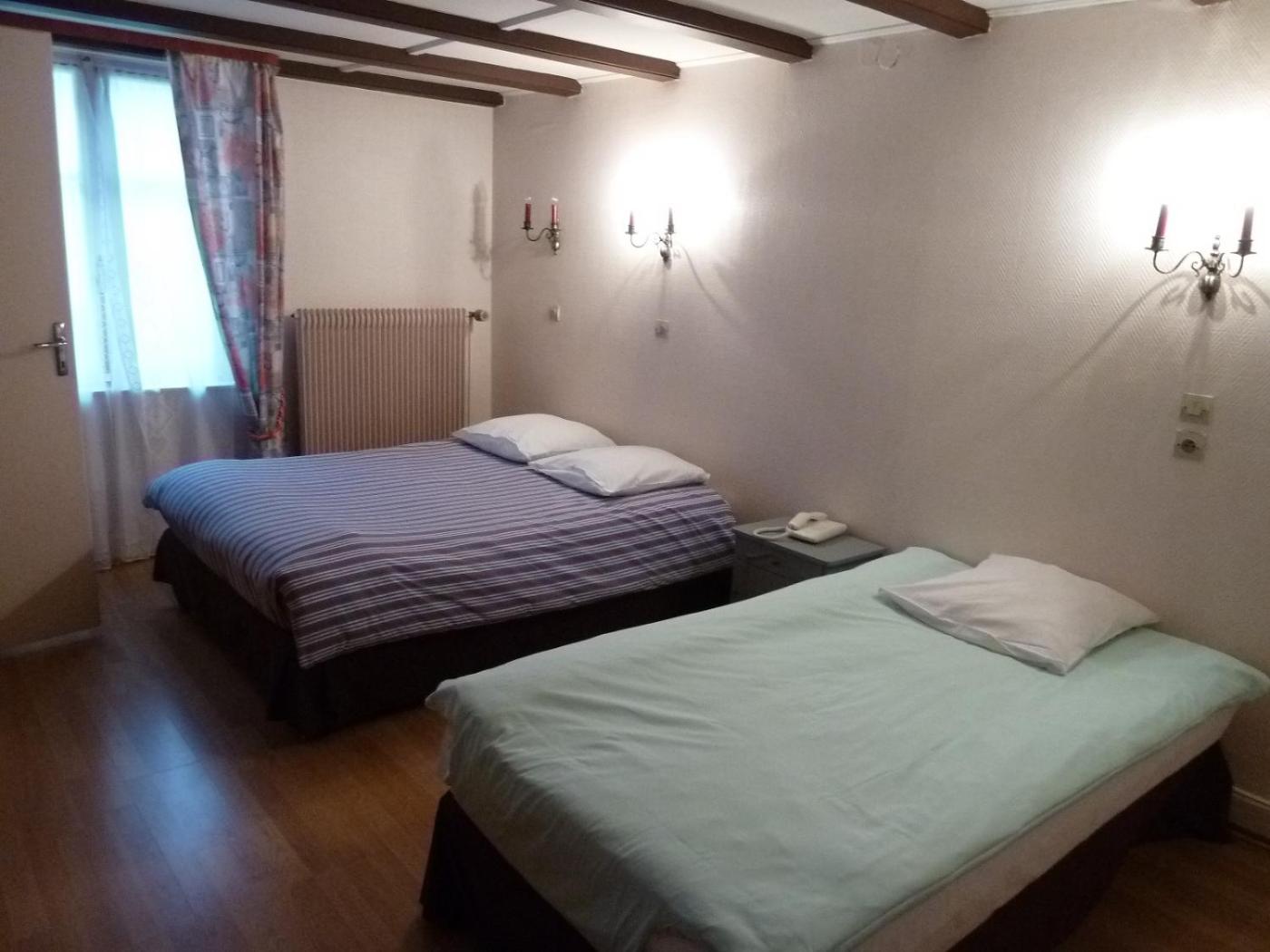 Les chambres de létablissement Aux Deux Clefs présentent un style rustique avec un mobilier en bois. Elles sont équipées dune connexion Wi-Fi gratuite, dune télévision et dune salle de bains privative.