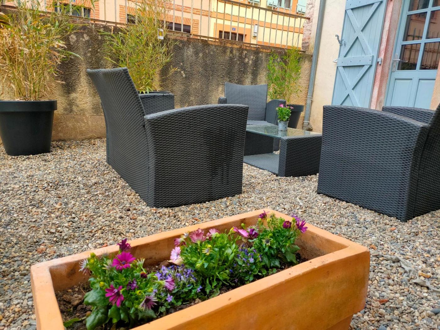 Appartement 1 Chambre. Boasting a private entrance, this apartment comes with 1 living room, 1 separate bedroom and 1 bathroom with a shower and a hairdryer. In the fully equipped kitchen, guests will find a stovetop, a refrigerator, kitchenware and a microwave. Featuring a terrace with ancourtyard view, this apartment also features a coffee machine and a flat-screen TV. The unit has 3 beds.