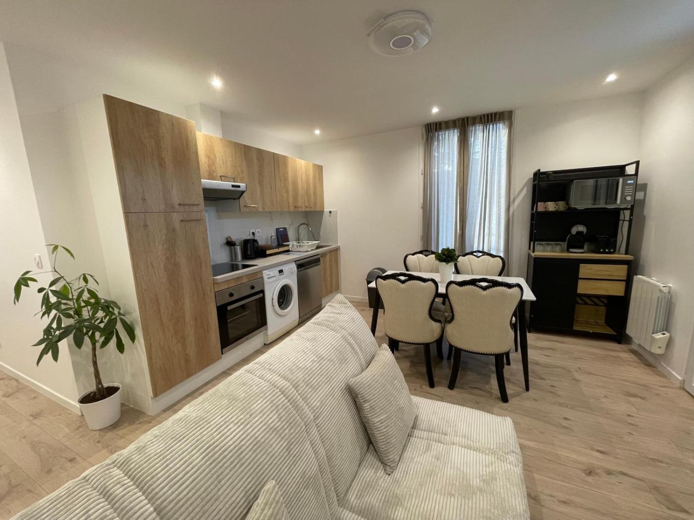 Appartement 2 Chambres avec Terrasse. Featuring a private entrance, this apartment consists of 1 living room, 2 separate bedrooms and 1 bathroom with a shower and a hairdryer. Guests can make meals in the kitchen that is equipped with a stovetop, a refrigerator, a dishwasher and kitchenware. Boasting a terrace with city views, this apartment also provides a washing machine and a flat-screen TV. The unit offers 3 beds.