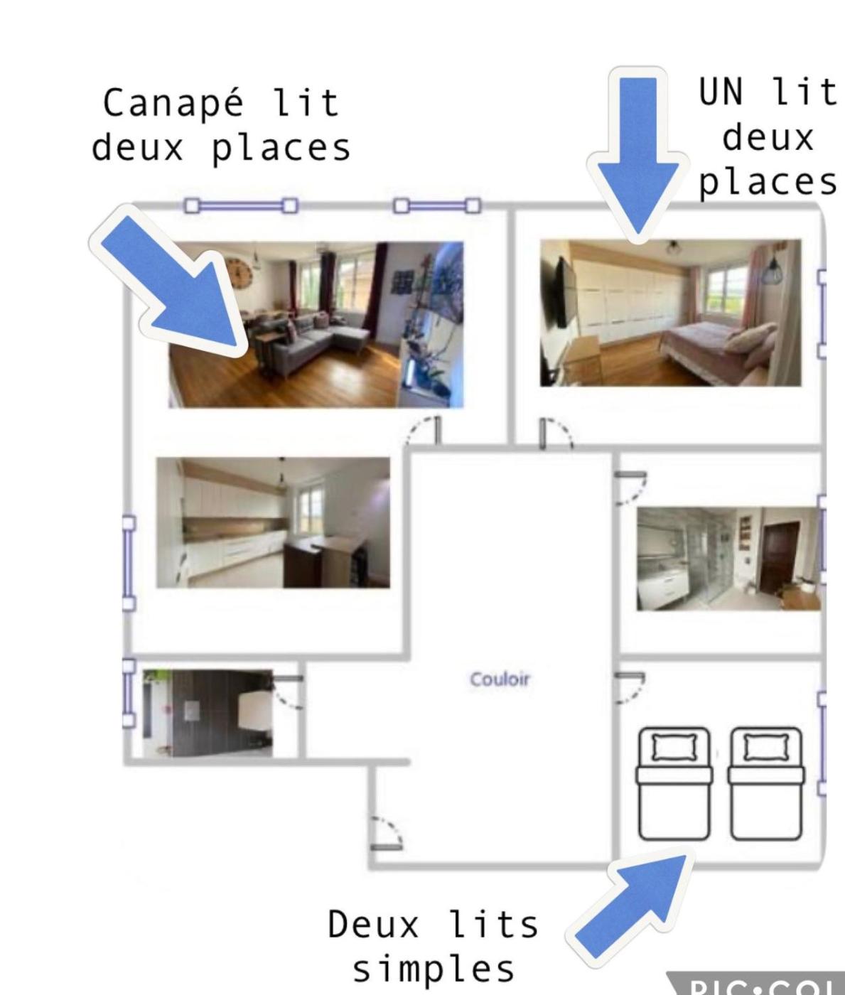 Appartement 2 Chambres. The apartments kitchen is available for cooking and storing food. The spacious air-conditioned apartment provides a flat-screen TV, a washing machine, a wardrobe and heating. The unit offers 4 beds.