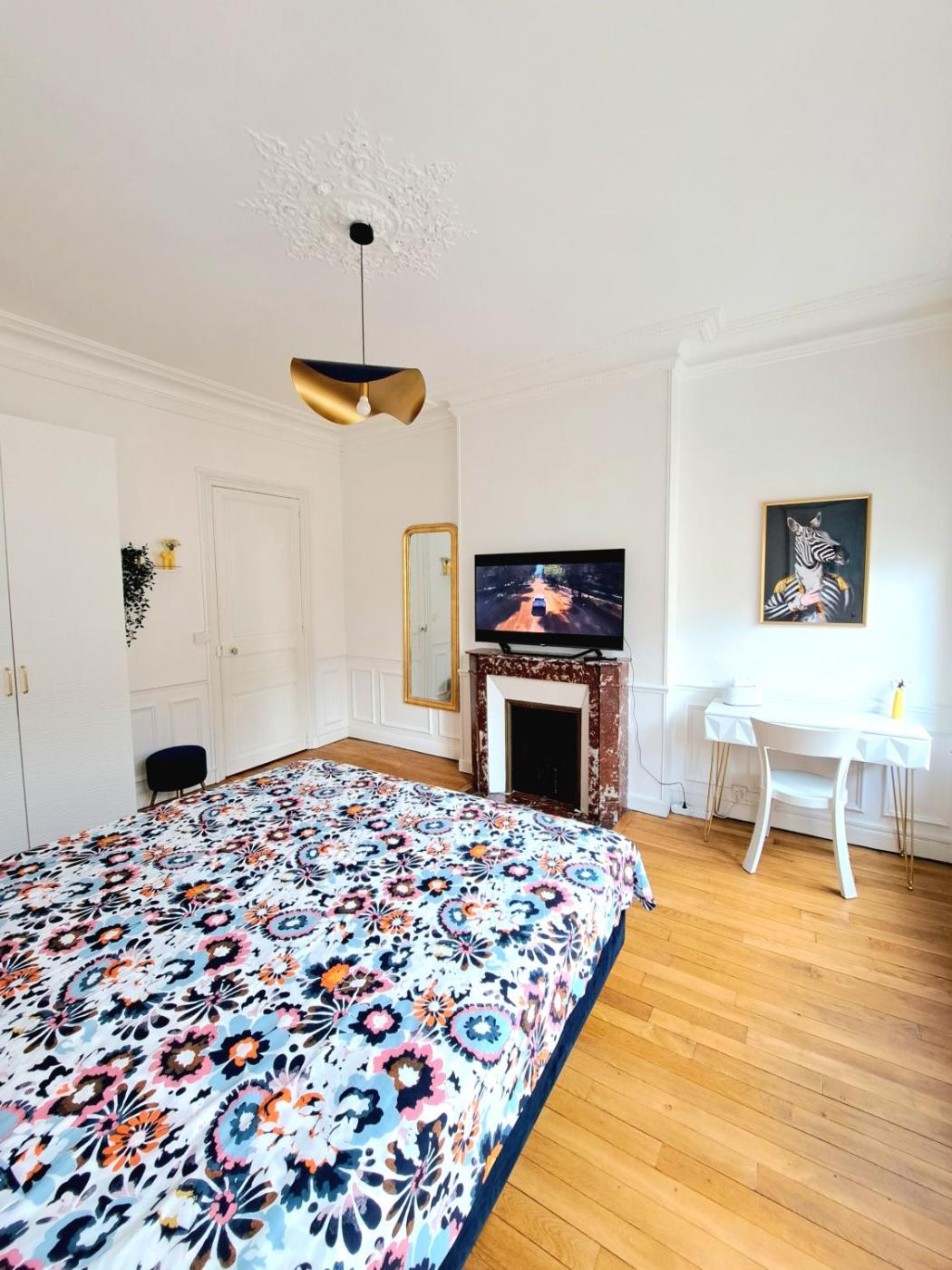 Appartement 2 Chambres. This apartment includes 1 living room, 2 separate bedrooms and 1 bathroom with a shower and a hairdryer. In the fully equipped kitchen, guests will find a stovetop, a refrigerator, kitchenware and an oven. The apartment has parquet floors, a seating area with a flat-screen TV with streaming services, a washing machine, a tea and coffee maker, as well as a dining area. The unit has 2 beds.