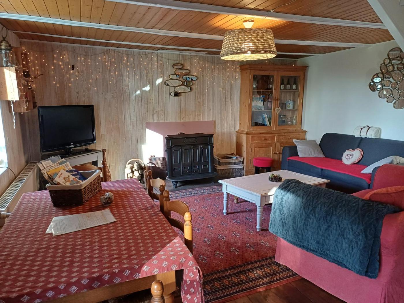 Maison 2 Chambres. This holiday home offers a fireplace. Featuring a private entrance, this holiday home comprises 1 living room, 2 separate bedrooms and 1 bathroom with a bath and a hairdryer. Guests will find a stovetop, a refrigerator, a dishwasher and an oven in the kitchen. The holiday home also provides guests with a barbecue. Boasting a terrace with garden views, this holiday home also provides a tea and coffee maker and a flat-screen TV with streaming services. The unit offers 4 beds.