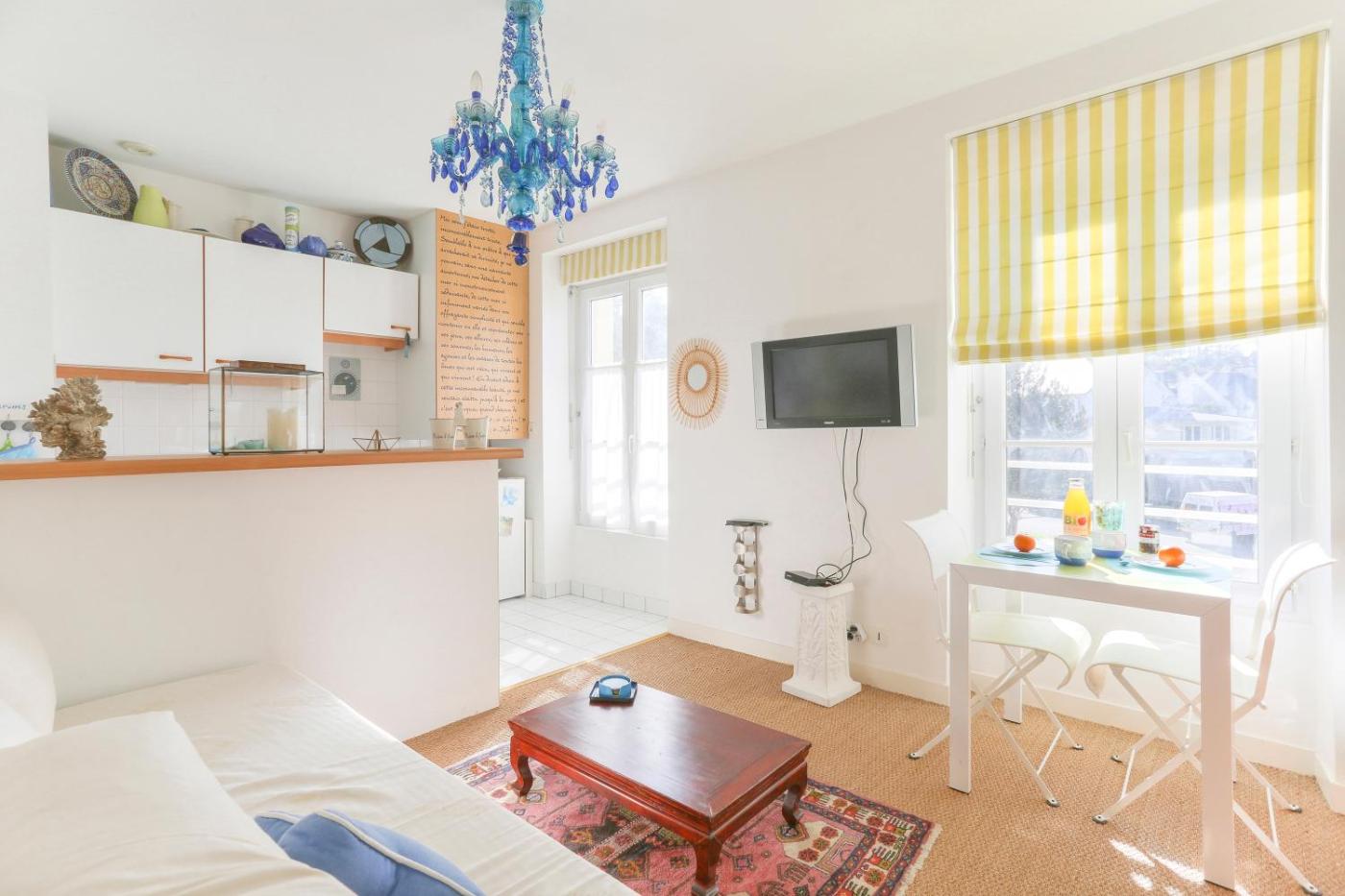Appartement 1 Chambre. This apartment consists of 1 bedroom, a kitchen and 1 bathroom with a bath and a hairdryer. The fully equipped kitchen features a refrigerator, a dishwasher, kitchenware and an oven. The apartment provides a washing machine, a tea and coffee maker, a wardrobe, tumble dryer, as well as a TV. The unit offers 3 beds.