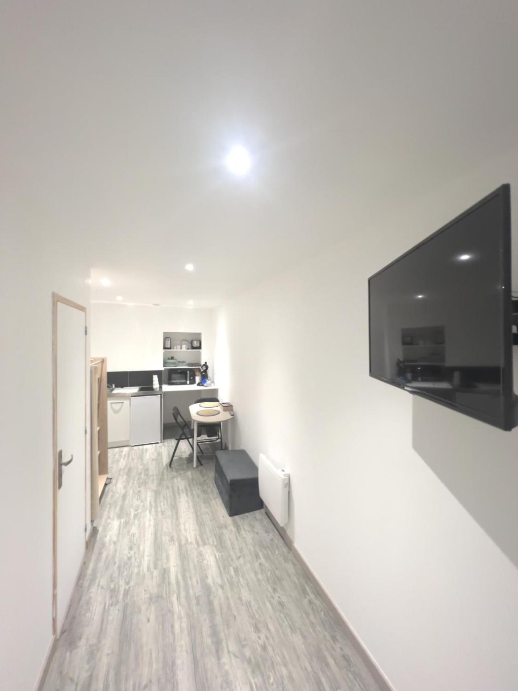 Cet appartement comporte 1 chambre, une télévision à écran plat, ainsi qu’une cuisine.