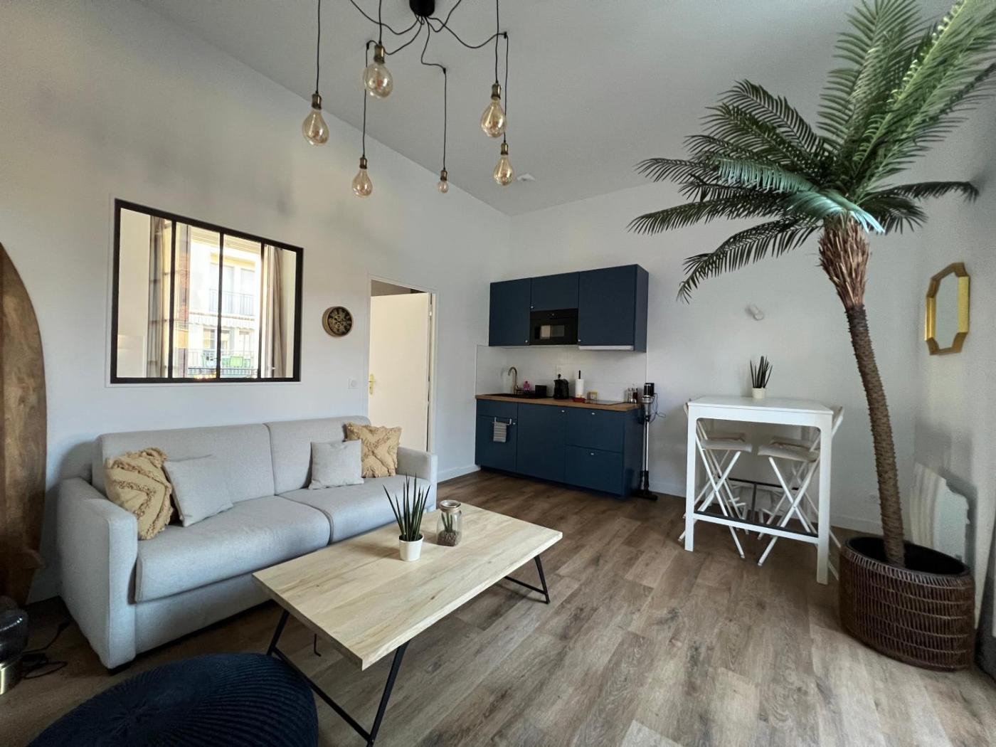 Cet appartement se compose de 1 chambre, dun salon, dune cuisine entièrement équipée avec un réfrigérateur et une machine à café, ainsi que de 1 salle de bains avec une douche et des articles de toilette gratuits. Des serviettes et du linge de lit sont disponibles.