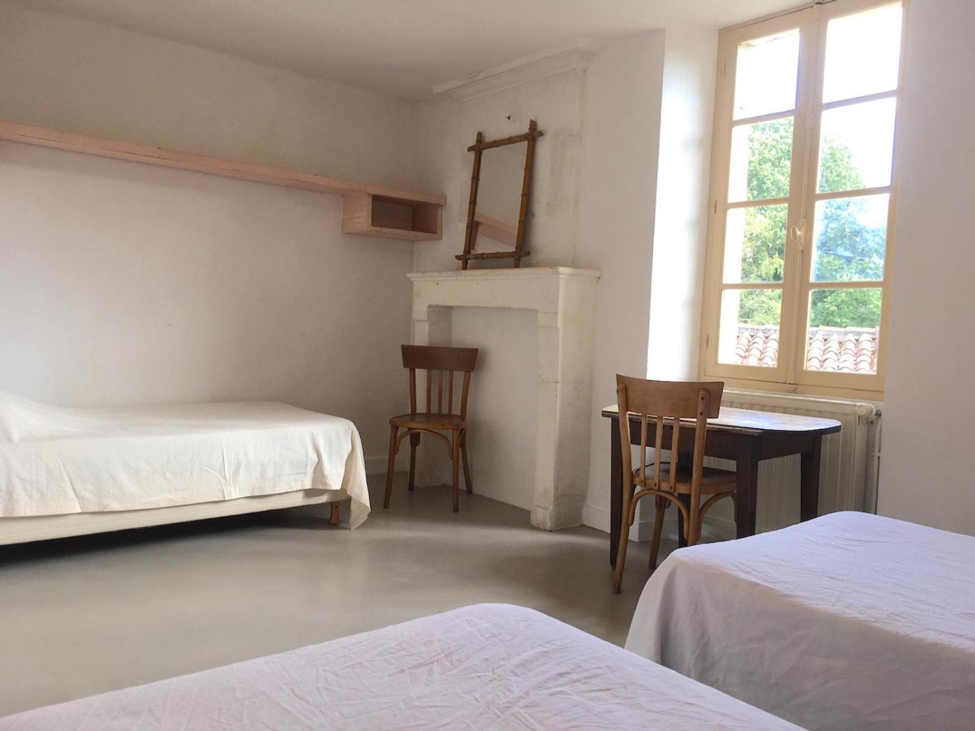 Chambre Double ou Lits Jumeaux. This twindouble room has a desk, a terrace, ancourtyard view and a shared bathroom. ;