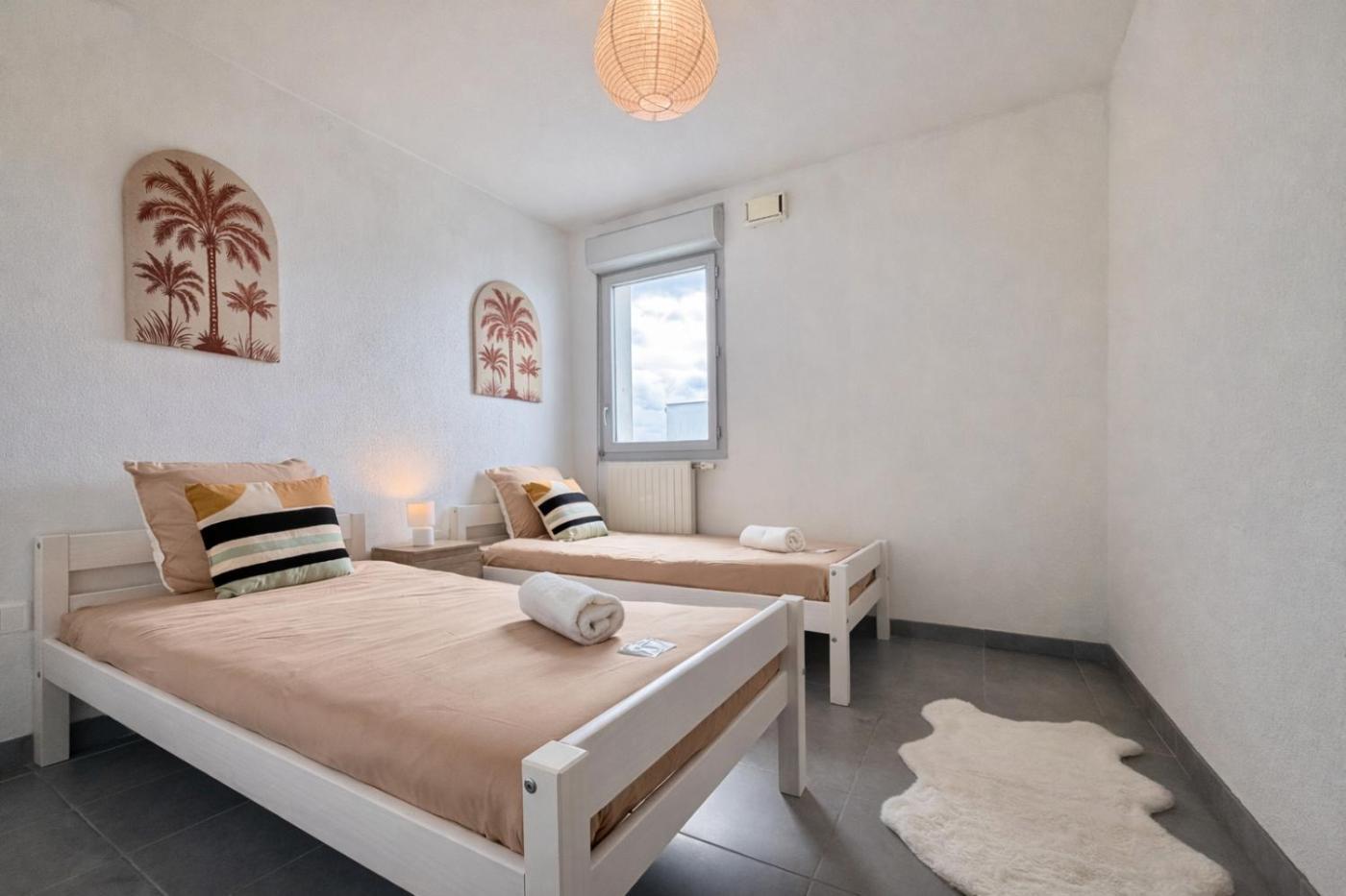 Appartement 2 Chambres avec Balcon. This spacious apartment features 1 living room, 2 separate bedrooms and 1 bathroom with a bath. Meals can be prepared in the kitchen, which has a stovetop, a refrigerator, a dishwasher and kitchenware. Boasting a terrace with garden views, this apartment also features a washing machine and a flat-screen TV. The unit has 3 beds.