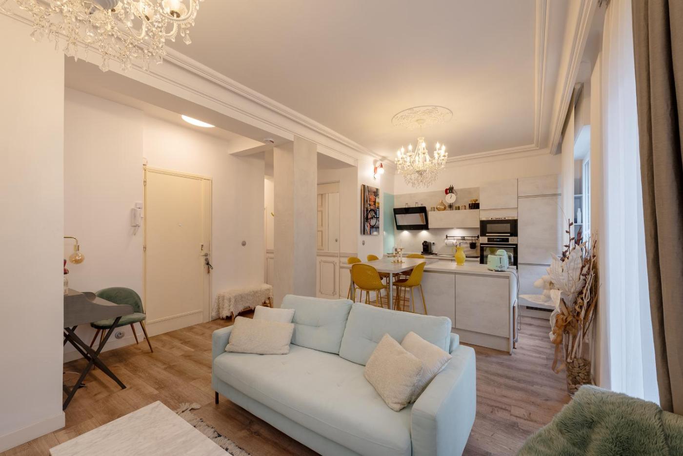 Appartement 2 Chambres. Featuring a private entrance, this spacious apartment also is comprised of 2 bedrooms, a seating area and 1 bathroom with a walk-in shower and a hairdryer. In the fully equipped kitchen, guests will find a stovetop, a refrigerator, a dishwasher and kitchenware. The air-conditioned apartment offers a flat-screen TV with cable channels, a washing machine, soundproof walls, a tea and coffee maker as well as city views. The unit offers 2 beds.