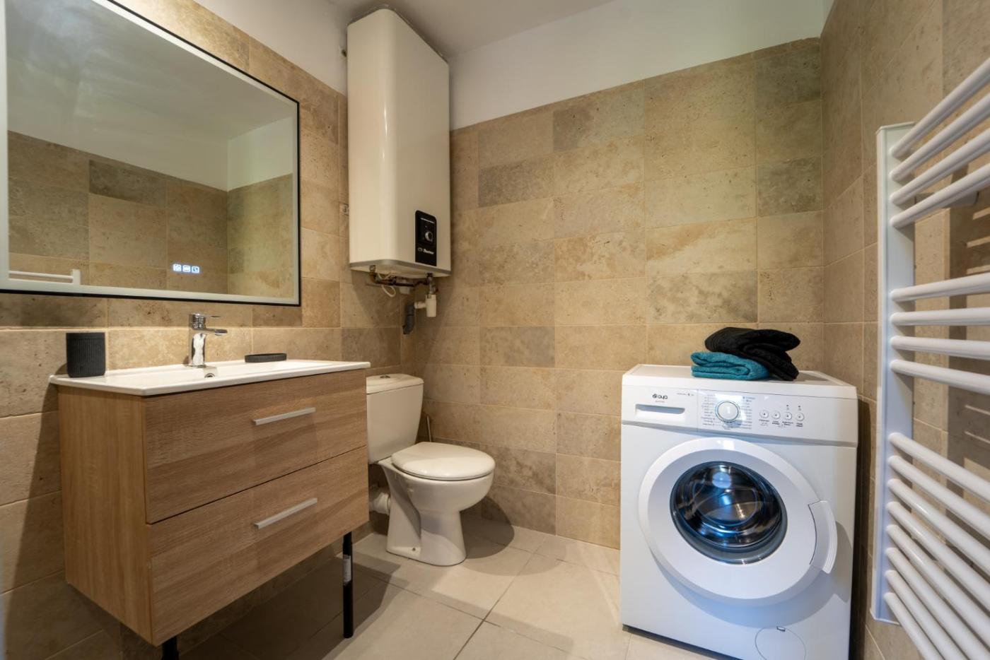 Studio Supérieur. The well-fitted kitchen features a stovetop, a refrigerator, kitchenware and an oven. The studio provides a washing machine, a tea and coffee maker, as well as a private bathroom featuring a shower and a hairdryer. The unit offers 1 bed. ;