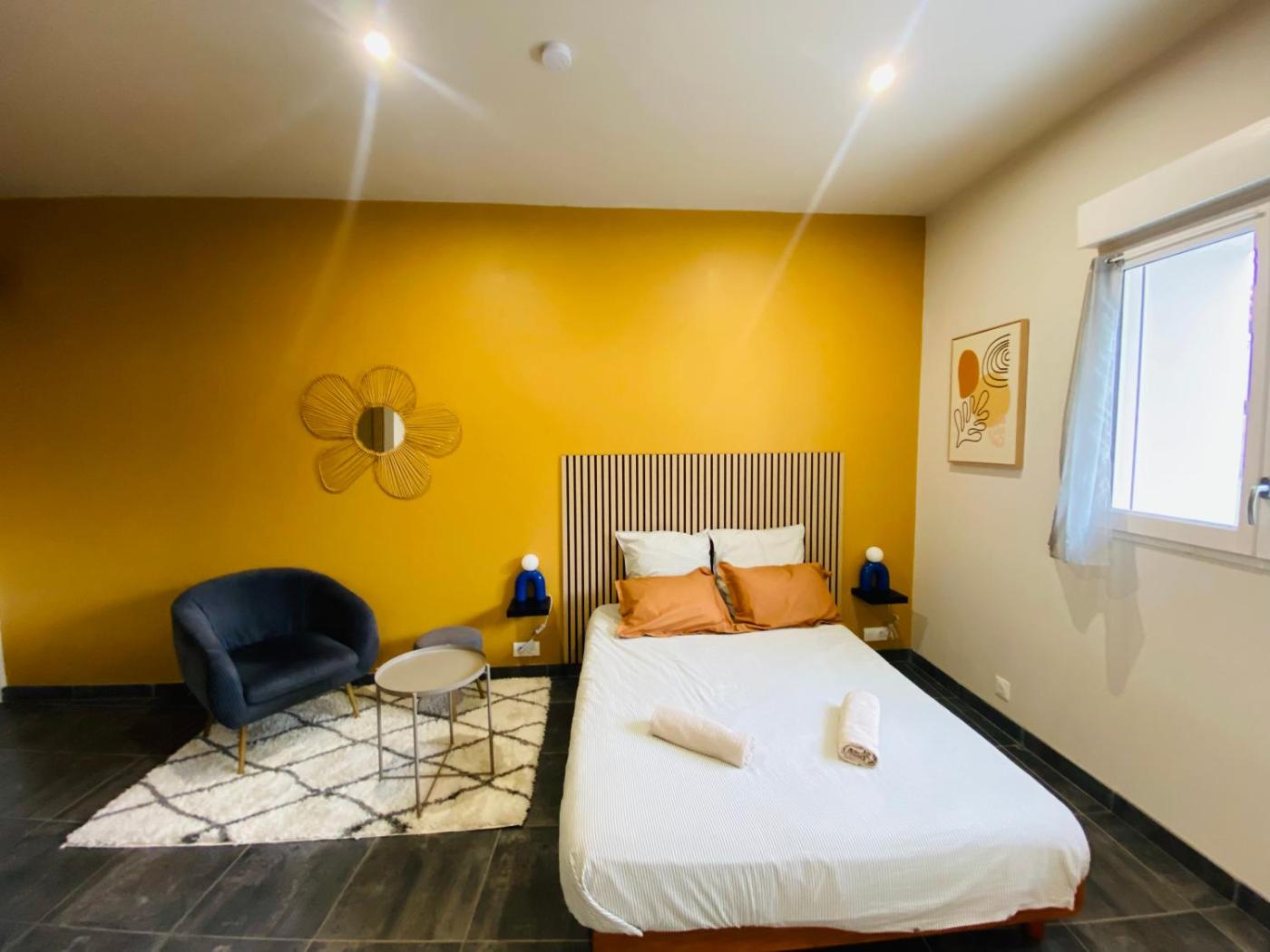 Appartement 1 Chambre. This apartment is comprised of 1 living room, 1 separate bedroom and 1 bathroom with a shower and free toiletries. In the fully equipped kitchen, guests will find a stovetop, a refrigerator, a dishwasher and kitchenware. The air-conditioned apartment offers a flat-screen TV, a washing machine, soundproof walls, a coffee machine as well as garden views. The unit offers 1 bed.
